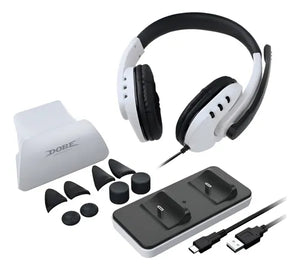 Lleva tu experiencia en PlayStation 5 al siguiente nivel con este completo set gamer. Incluye un headset cómodo y de excelente sonido, además de accesorios diseñados especialmente para mejorar la protección, control y comodidad de tus mandos y consola. Es una solución práctica y accesible para quienes quieren equipar su PS5 de forma rápida y completa.